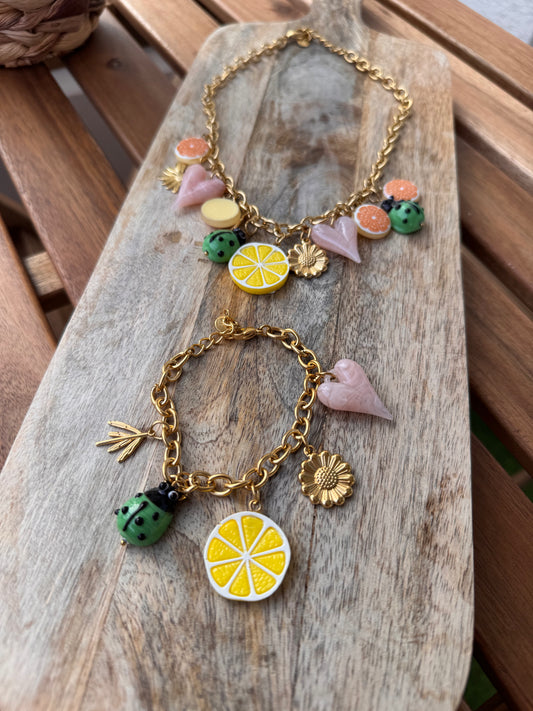 COLLIER DOUBLE CHARMS 🍓🍍🥝🍌