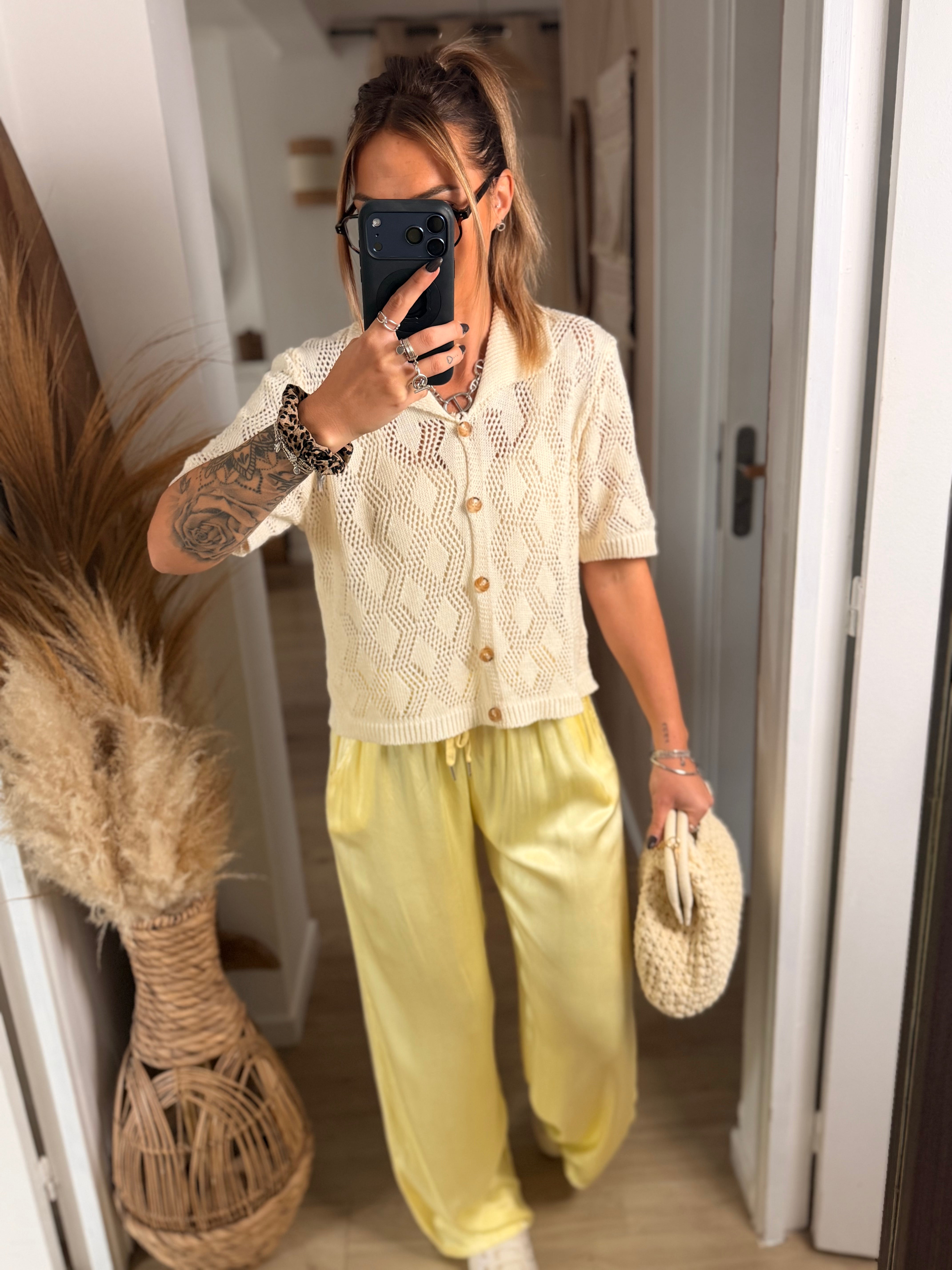 Top Coupe polo  Crochet Taille unique convient du 36 au 42 Compositions: 50% coton 50% acrylique Je portes le top élo en dessous