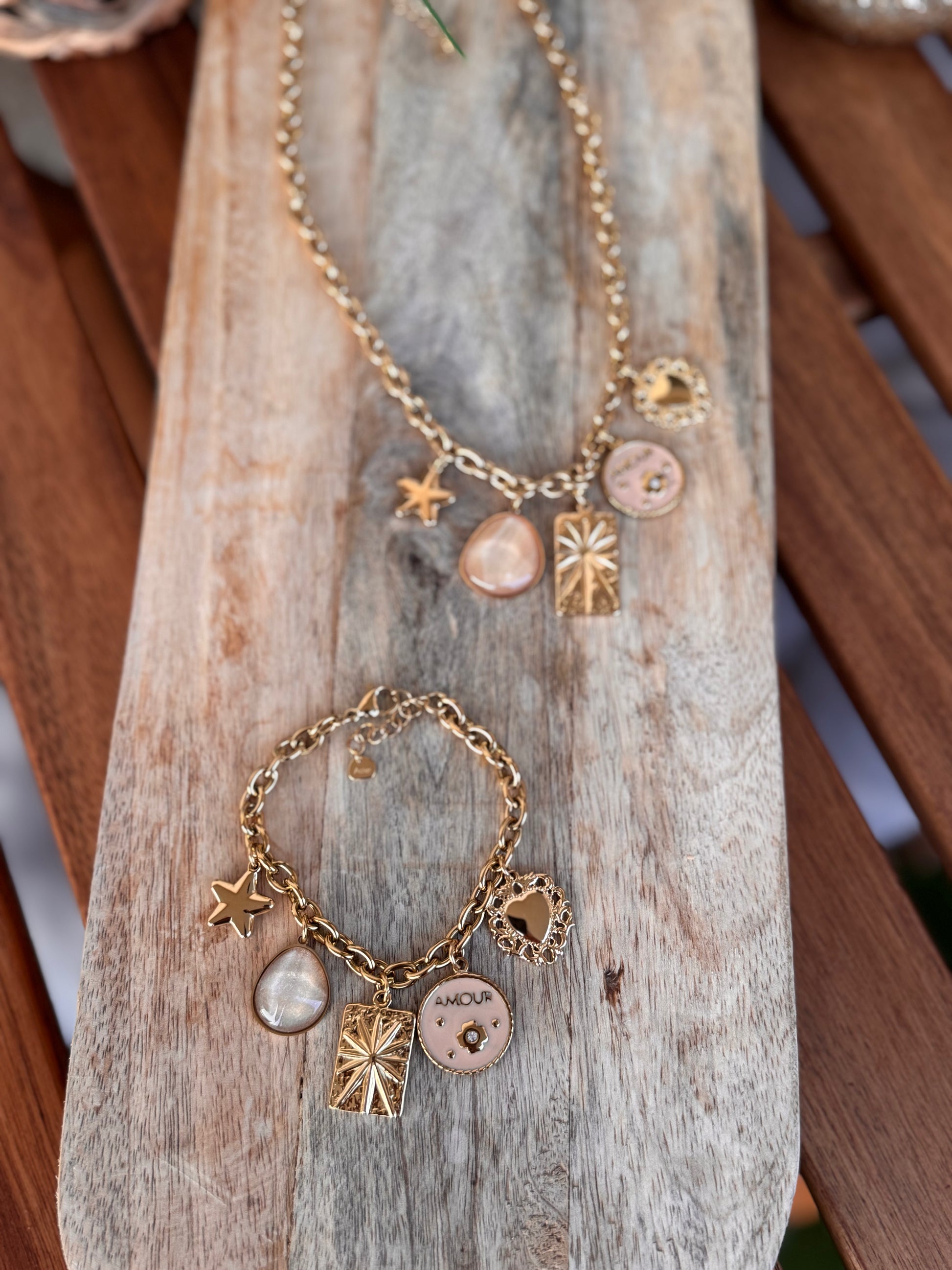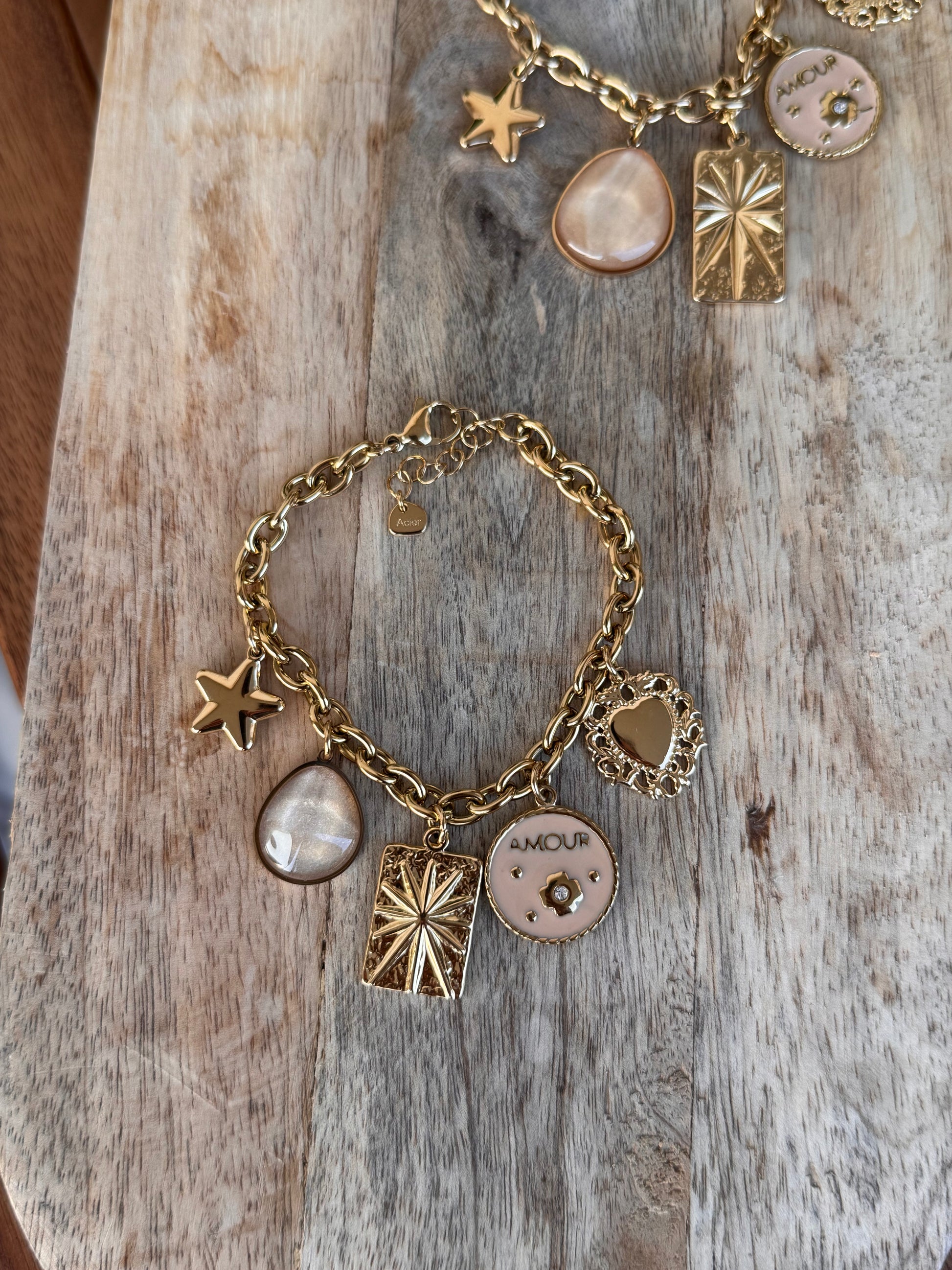Ce bracelet charms dorĂ© allie Ă©lĂ©gance et personnalisation. Chaque charm apporte une touche unique, permettant de crĂ©er un bijou qui reflĂšte votre style et vos souvenirs. Sa finition dorĂ©e garantit une brillance durable et une rĂ©sistance Ă lâusure quotidienne, faisant de ce bracelet un accessoire raffinĂ© et polyvalent, idĂ©al pour sublimer toutes vos tenues.