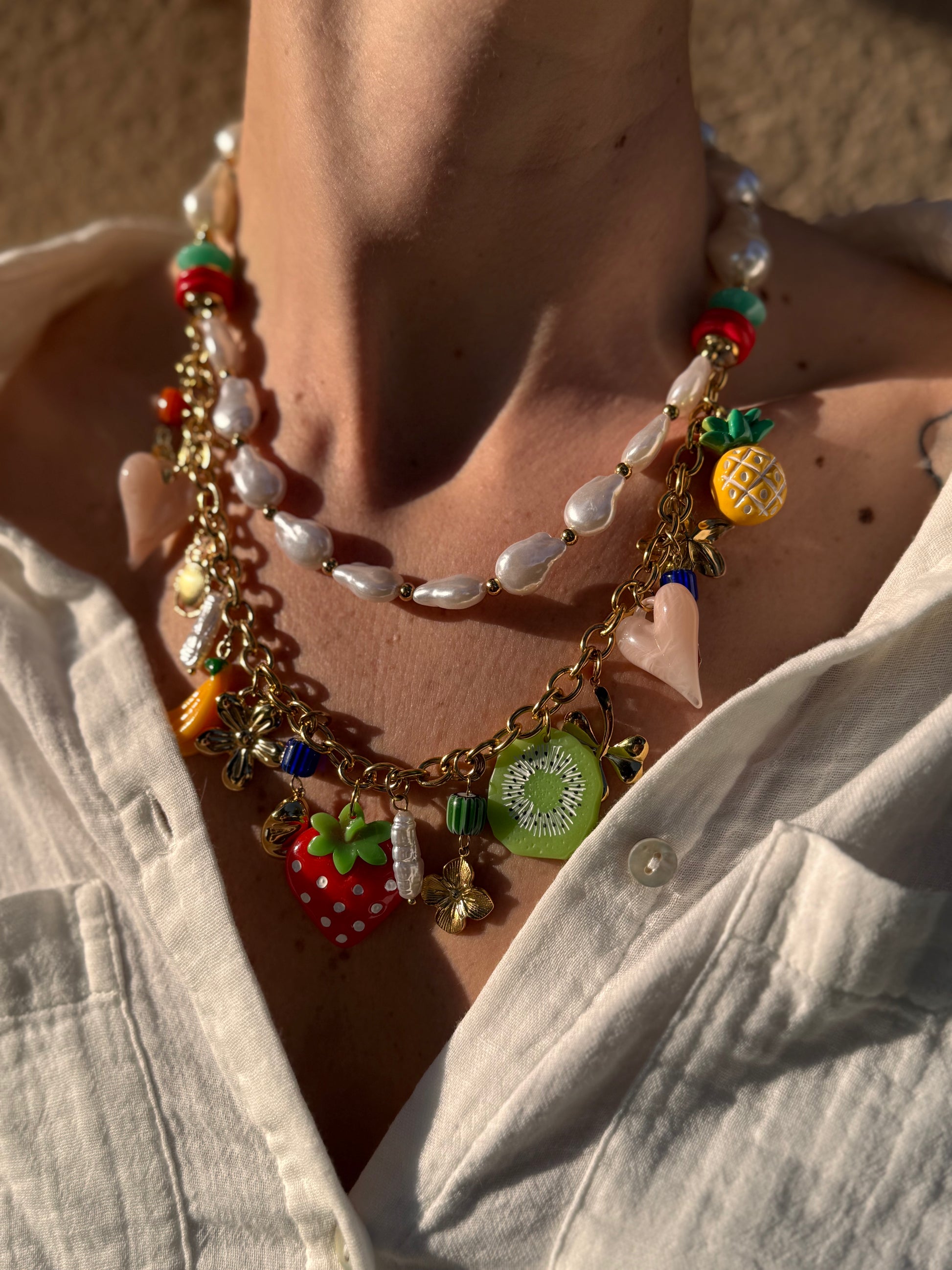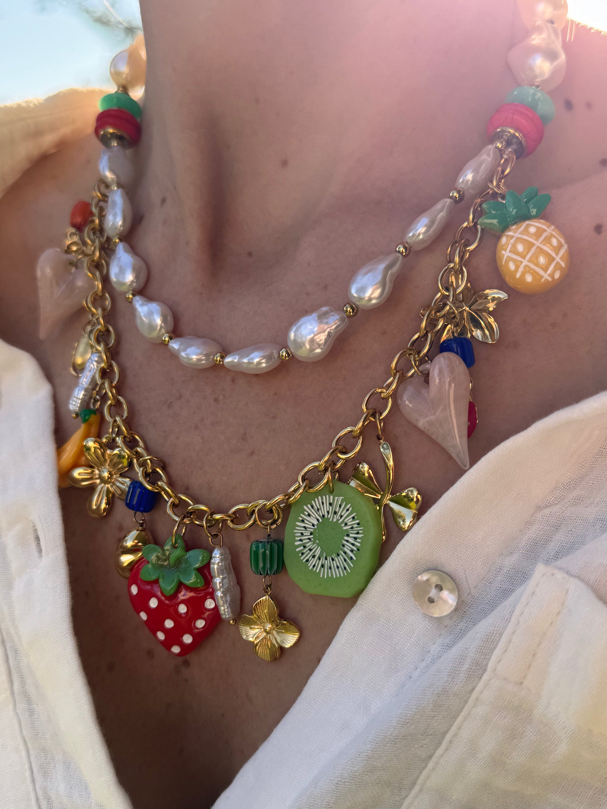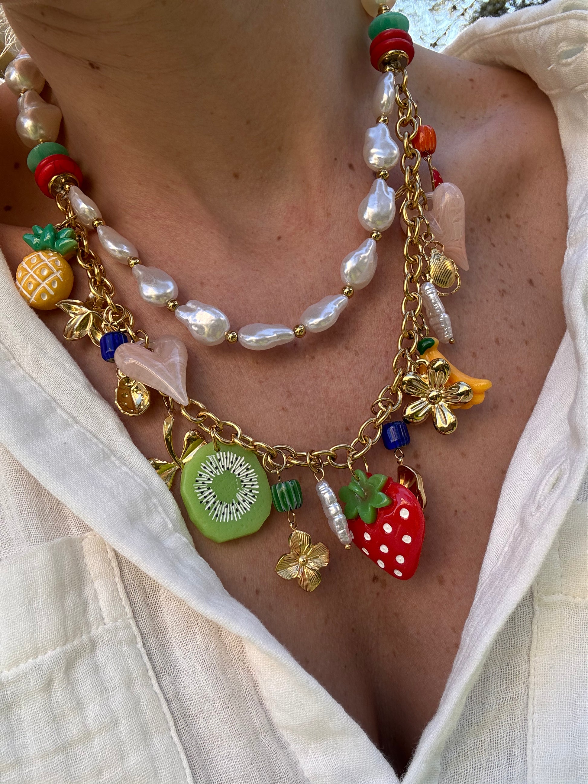 COLLIER DOUBLE CHARMS 🍓🍍🥝🍌