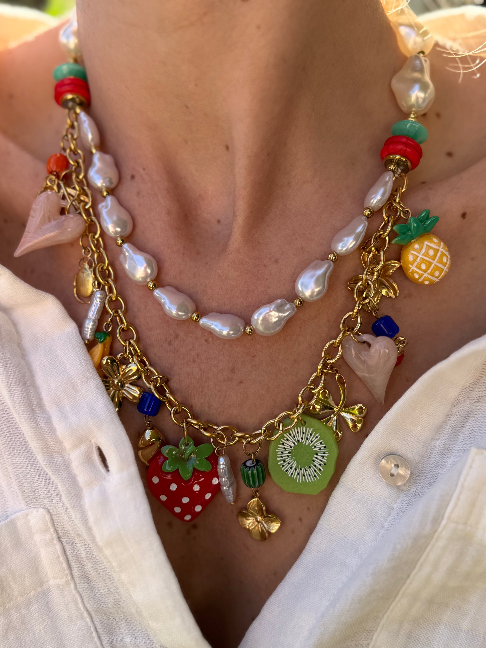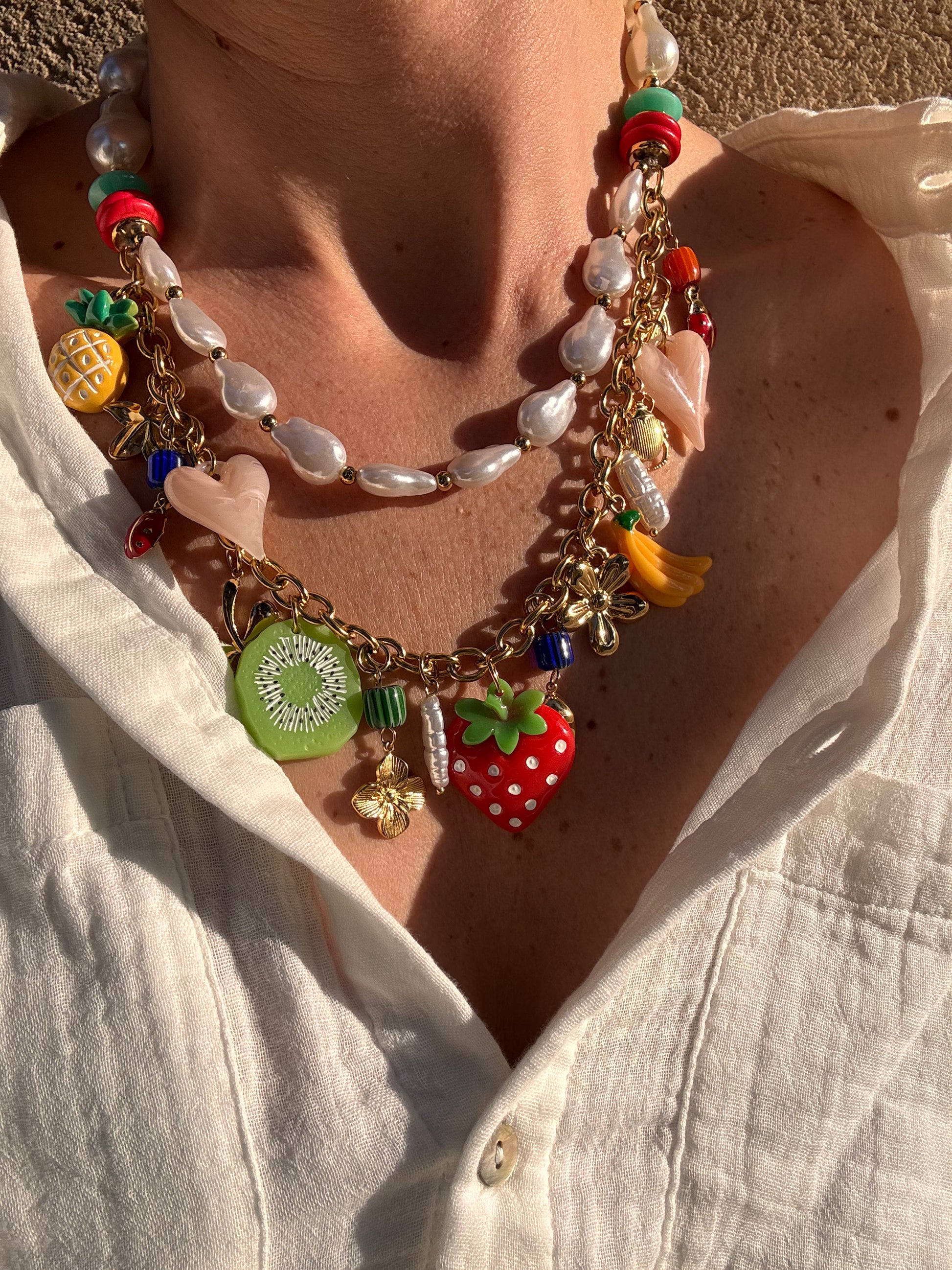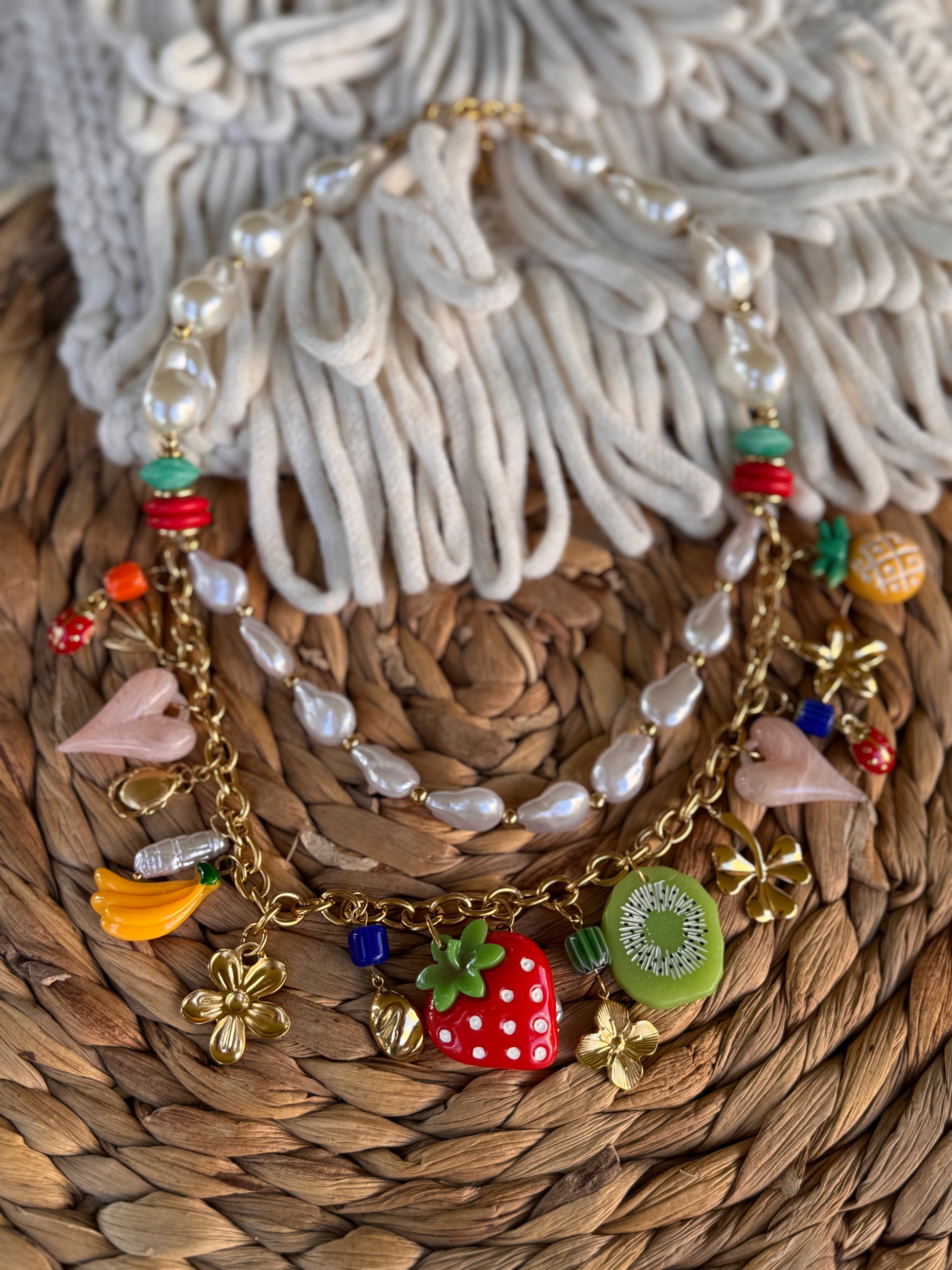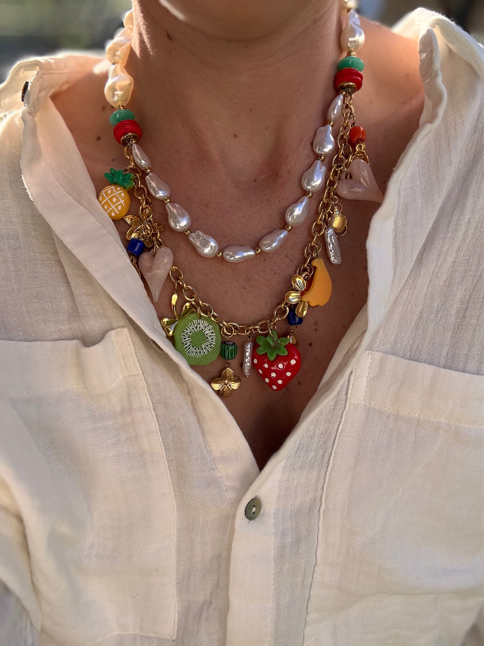 COLLIER DOUBLE CHARMS 🍓🍍🥝🍌