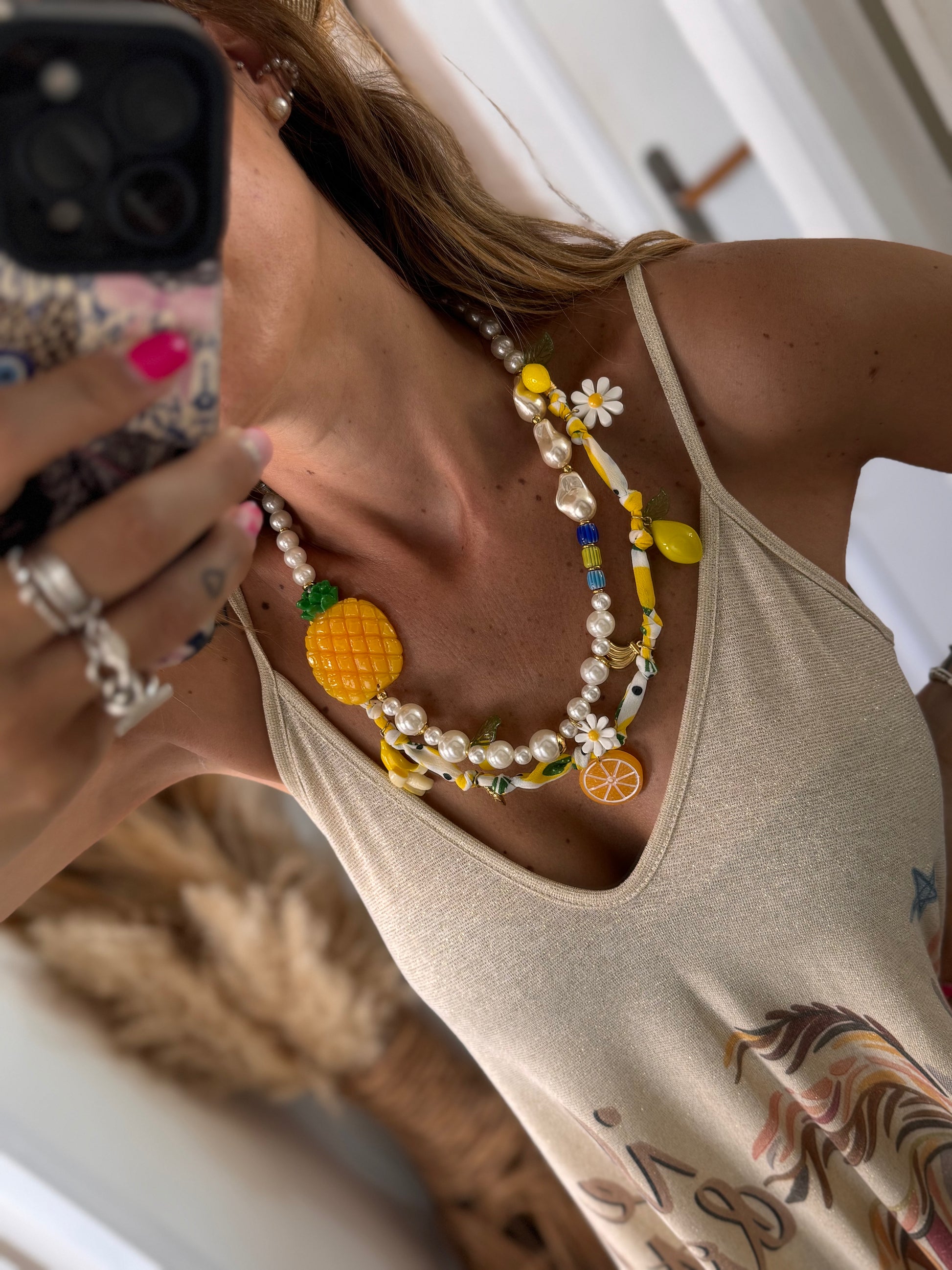 Montrez votre amour pour les fruits avec notre Collier Double Charms 🍍! Fabriqué avec des fruits en argent, il ajoutera une touche de fraîcheur et de douceur à votre tenue. Le cadeau parfait pour tout amateur de fruits. Commandez maintenant et ajoutez une touche de couleur à votre collection de bijoux!