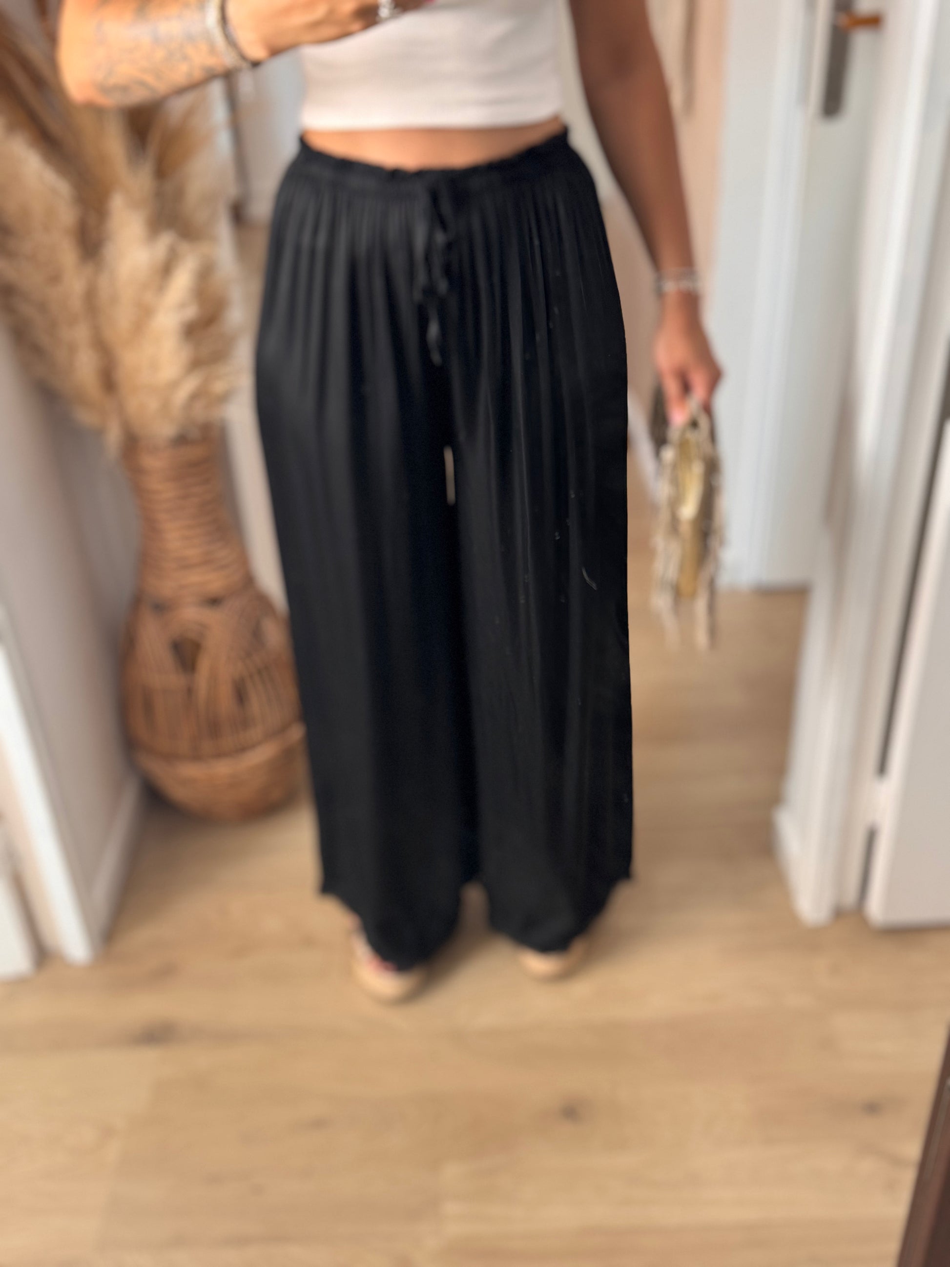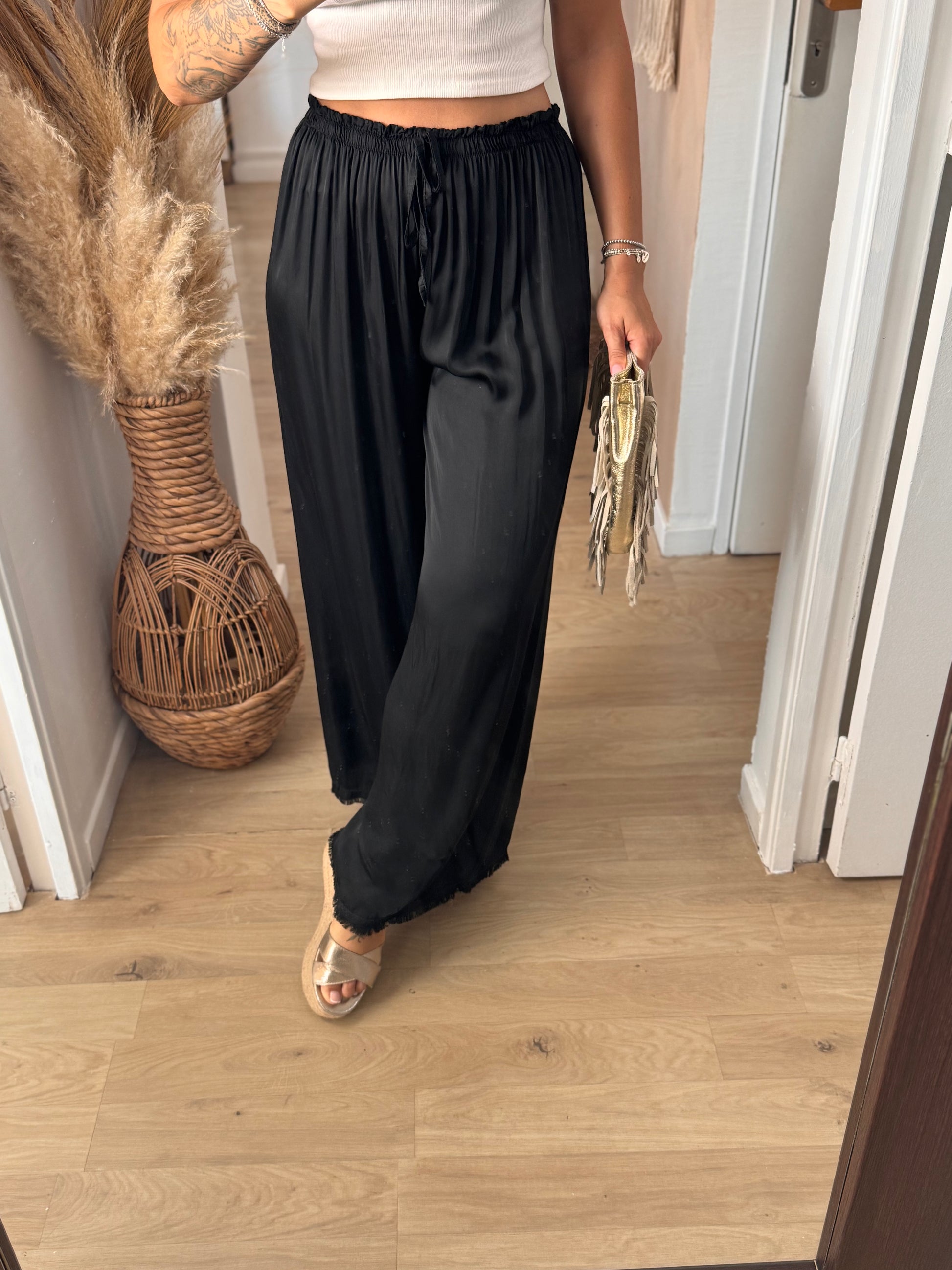 Magnifique pantalon fluide satinée avec effets effilés en bas